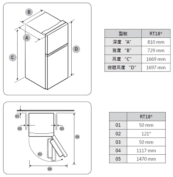 [RT18 雙循環雙門系列與牆面建議距離為多少]