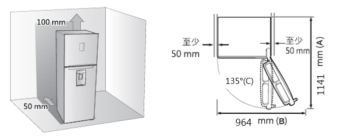 - [安裝時確保在上、右、上、後側均留有間隙。這將有助於減少耗電量並節省電費。]