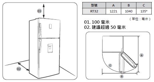 [RT32 雙循環雙門系列與牆面建議距離為多少]