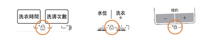 [依不同型號,兒童鎖的按鈕也會不同,請確認洗衣機上的兒童鎖是落在哪兩個功能上。]