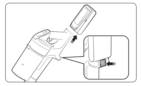 [按住手把後方的電池拆卸按鈕可移除電池。]