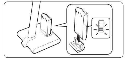 [按下電源按鈕時,無線吸塵器會以「中」模式開始運作。]