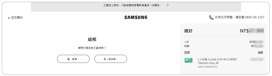[建議您登入三星帳號,登入三星帳號後方便查詢所有訂單紀錄,]