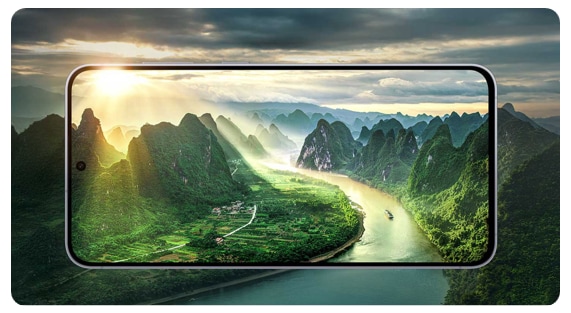 [Gálá~xý S25 F~É 的 6.7吋 FHD~+ 顯示螢幕具有高達 120 Hz 的更新頻率,可提供沉浸式的觀賞體驗。]