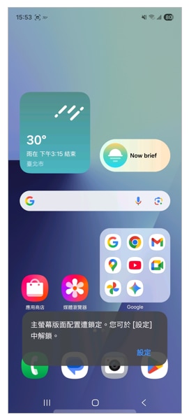 [主螢幕提供版面鎖定功能,可以避免點選應用程式時,意外的被移動位置。]