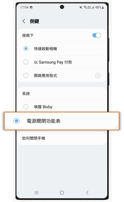 [當然您也可以將側邊鍵更改為關機功能。]