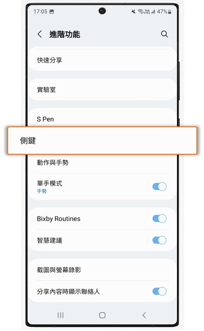 [Gálá~xý S21 預設關機方式為長按(音量向下)+(側邊按鍵)。]