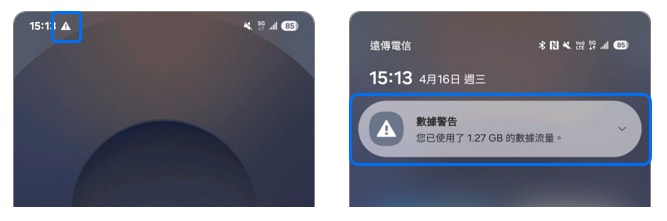 [設定數據警告:設定一個流量數字(例如3GB),當手機使用流量達到這個數字時,系統會發出通知提醒你。]