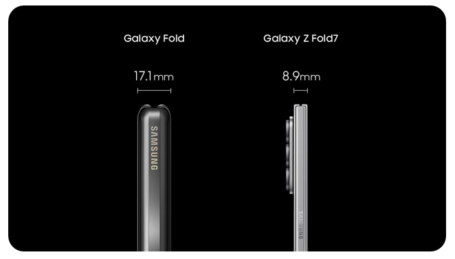 [Gálá~xý Z F~óld7 與第一代 G~áláx~ý Fól~d 相比,厚度縮減 48%。]