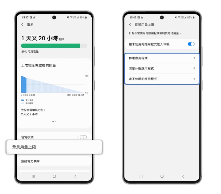 [● 深度休眠應用程式:深度休眠應用程式絕不會在背景中執行,僅會在您開啟時運作。]