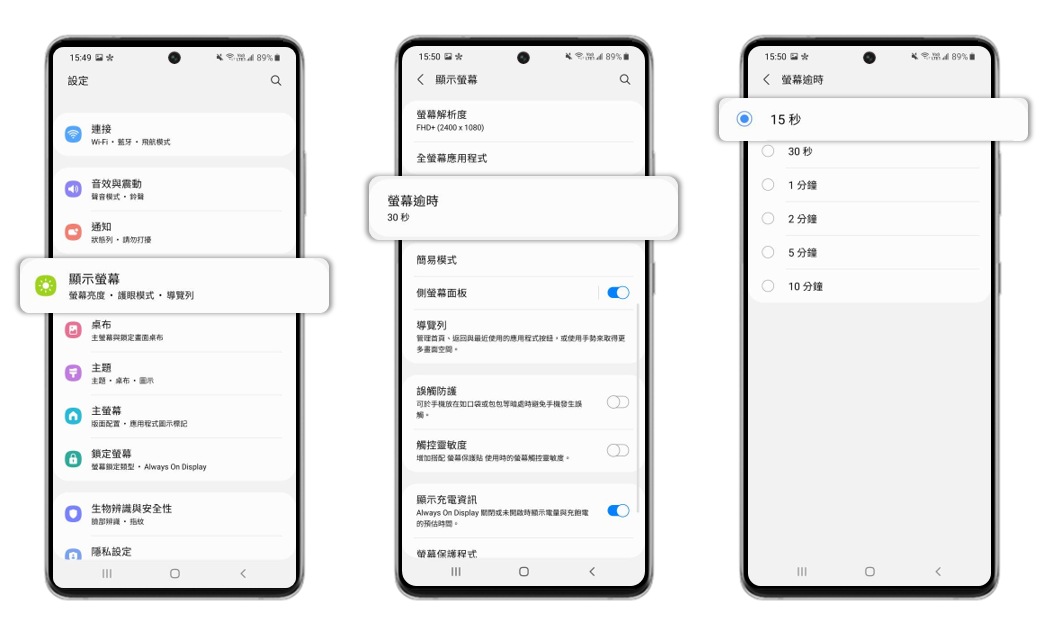 [請留意:螢幕逾時預設值為 30 秒。]