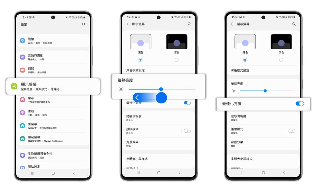 設定】後,點選【顯示螢幕】。]