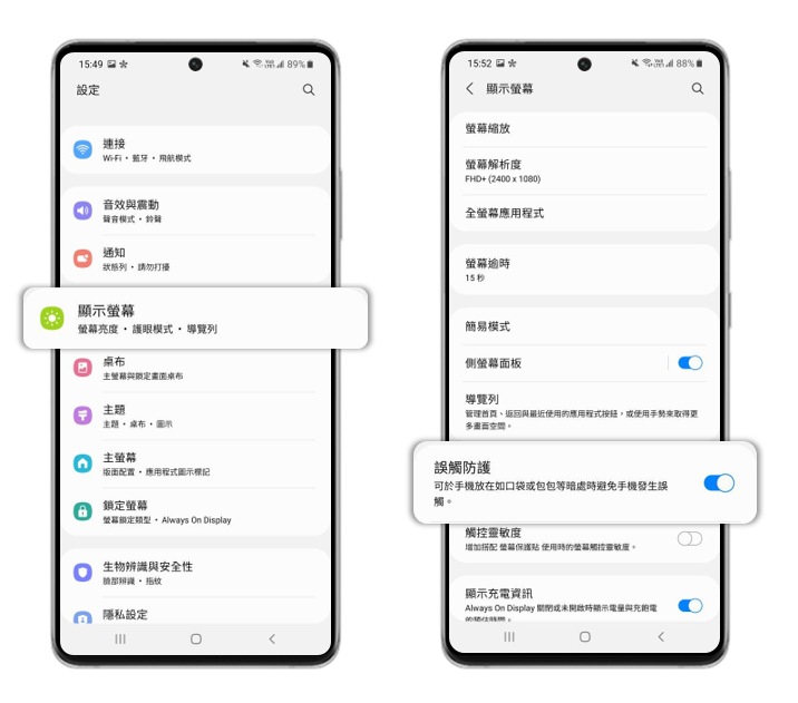 [您可以透過誤觸防護來減少手機在口袋或包包時,有誤觸撥號的情形。]