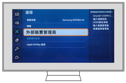 [量子電視 QÑ95B 如何將外部連接裝置更改為允許]