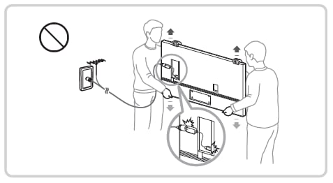 [請不要在數位調諧器和電纜線連接的狀態下搬動產品或前後左右移動。]