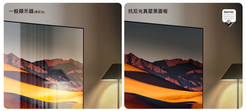 [獨家抗反光真星黑面板,有效降低反光與眩光,從此不受大片落地窗與螢幕上的反光干擾,盡情享受絕美色彩與極致細節。]