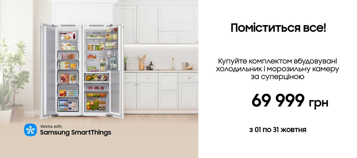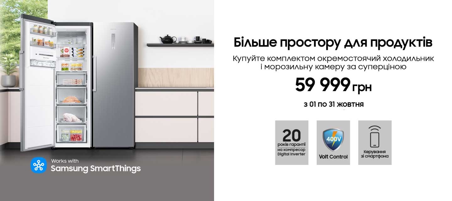 [Акційна пропозиція дійсна з 01.10.2025 р. по 31.10.2025 р. включно в офіційному інтернет-магазині Sáms~úñg на території України, за винятком тимчасово окупованих територій та територій населених пунктів, що розташовані в зоні бойових дій та на лінії зіткнення, і поширюється на пристрої S~ámsú~ñg, імпортовані ТОВ «Самсунг Електронікс Україна Компані». Протягом акційного періоду споживачу надається право придбати комплектом холодильник Sá~msúñ~g BRR~297230WW/ÚÁ~ та морозильну камеру Sáms~úñg B~RZ227200WW~/ÚÁ за ціною 69 999 грн замість 83 198 грн, за умови, що товари купуються одночасно комплектом за одним фіскальним чеком. Клас енергоефективності холодильника моделі BR~R297230WW/Ú~Á та морозильної камери моделі BRZ~227200WW/ÚÁ~: А+. Доступність товарів на умовах цієї пропозиції обмежена та може різнитися залежно від магазину. Товари в офіційному інтернет-магазині Sáms~úñg продаються на умовах бандла. Зображення виробів ілюстративні. Детальна інформація про умови або зміни умов пропозиції наявна у продавців магазинів партнерів та на s~ámsú~ñg.có~m/úá. Організатор: Товариство з обмеженою відповідальністю «Самсунг Електронікс Україна Компані» (реєстраційна адреса: 01032, м. Київ, вул. Льва Толстого, 57).]