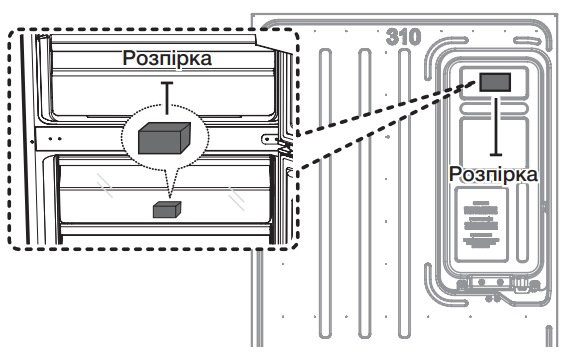 [Приєднання роздільних елементів (розпірки) для забезпечення оптимального енергоспоживання та для покращення експлуатаційних показників холодильника(зверніть увагу, можуть бути не в усіх моделях).]