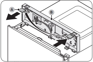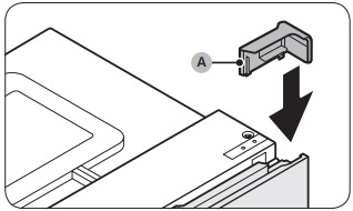 - [За допомогою хрестової викрутки викрутіть гвинт (А), який кріпить фіксатор (В) до нижньої завіси (С);]