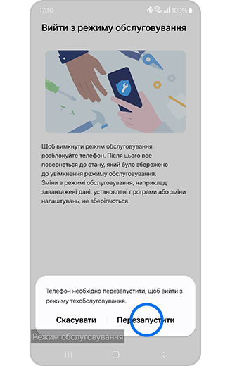 - [Ви також можете вийти з режиму обслуговування, перейшовши в Налаштування > Обслуговування пристрою > Режим техобслуговування.]