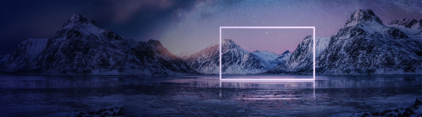 [Вид зверху на два телевізори ÓLÉD~, які рухаються один навпроти одного. Перехід до виду збоку на один із телевізорів ÓLÉD~, що демонструє його тонку рамку. Телевізор ÓLÉD~ обертається, щоб показати рожевий абстрактний пейзаж на екрані. Камера змінює фокус на інший телевізор ÓLÉD~, який показує блакитний абстрактний пейзаж на екрані.]