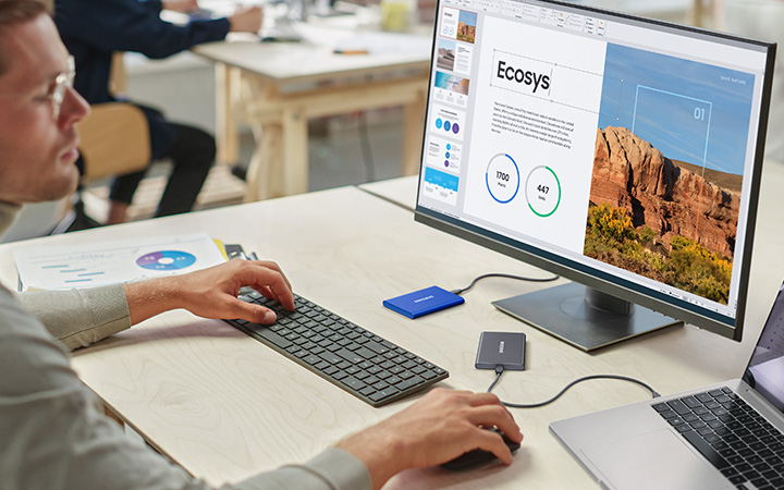 Create. Explore. Store. The T7 Portable SSD delivers fast speeds and durable features to back up any endeavor. Build your video-editing empire, file your photographs or back up your blogs all in an instant.