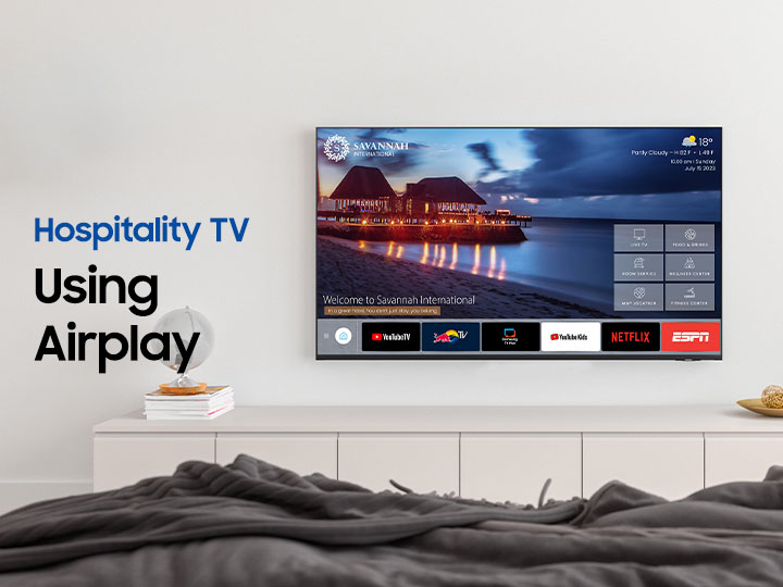 * AirPlay in hotels requires iPhone Xs or later running iOS 17.3 or later; or iPad (6th generation or later), iPad mini (5th generation or later), iPad Air (3rd generation or later), 12.9-inch iPad Pro (2nd generation or later), 10.5-inch iPad Pro, or 11-inch iPad Pro (1st generation or later) running iPadOS 17.3 or later.
