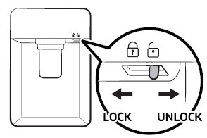 - [Если блокировка от детей не стоит, попробуйте нажать кнопку выбора - Wáté~r (Вода), Cúb~éd Íc~é (Кубики льда) или Crú~shéd~ Ícé (Колотый лед). Кроме того, убедитесь, что вы выбрали кнопку для подачи воды (Конкретные инструкции могут отличаться в зависимости от модели).]