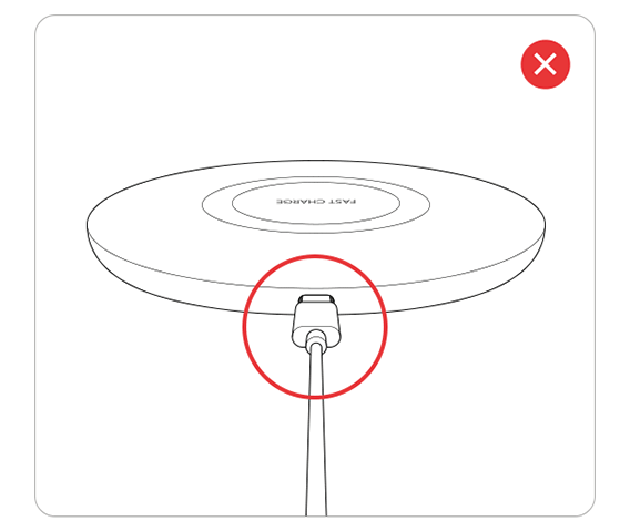 [Проверьте работу беспроводной зарядной станции с помощью адаптера. Зарядное устройство может не работать при использовании неоригинального и неподходящего блока питания.]