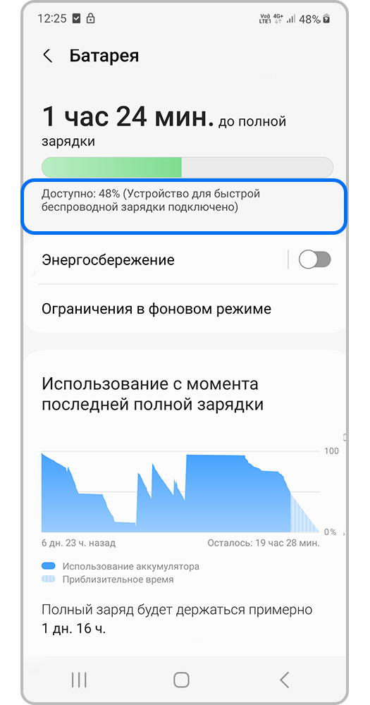 [Пункт «Быстрая зарядка» предназначен для проводной зарядки, а «Быст. беспров. зарядка» — для беспроводной зарядки. Выберите и включите предпочтительный способ зарядки.]
