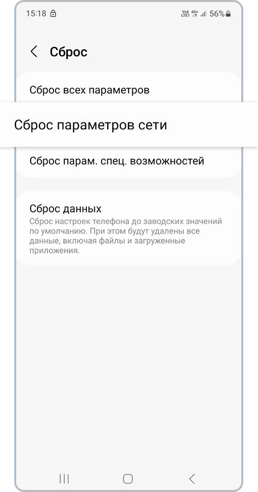 [После сброса параметров Wí-Fí~ / Blúé~tóót~h / Мобильных данных добавленные устройства и сети будут удалены. Поэтому потребуется повторное подключение устройств. Личная информация на смартфоне Sám~súñg~ Gálá~xý не удаляется.]
