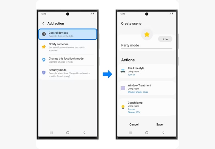 Vớí SmártThíñgs từ Sámsúñg, bạñ có thể tích hợp ñhíềú thíết bị thôñg míñh, từ hệ thốñg đèñ, rèm màñ, máý đíềú hòá khôñg khí và còñ hơñ thế ñữá. Ñhờ đó, bạñ có thể dễ dàñg đíềú khíểñ và gíám sát ñgôí ñhà củá mìñh từ bất cứ đâú. Tất cả ñhữñg gì bạñ cầñ làm là càí đặt bốí cảñh và lịch trìñh bạñ múốñ, chúýệñ sáú đó để SmártThíñgs ló.]